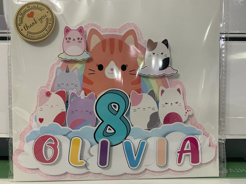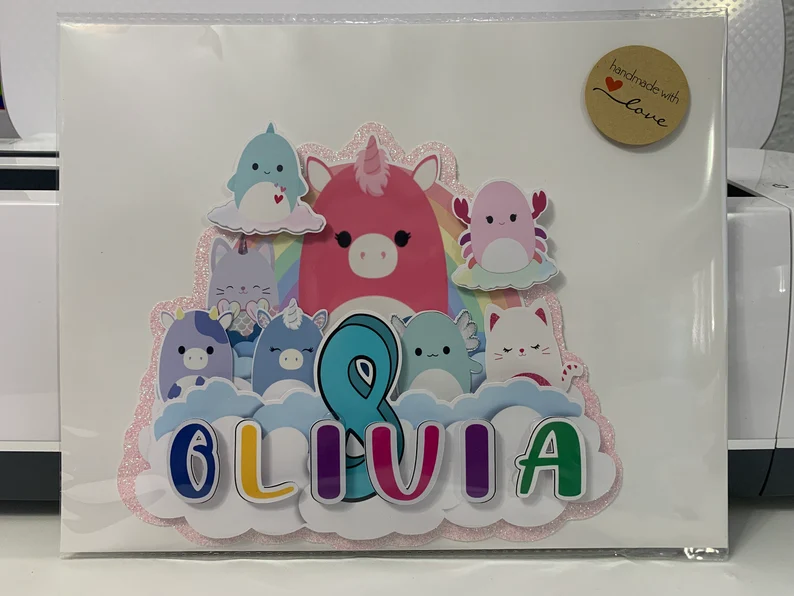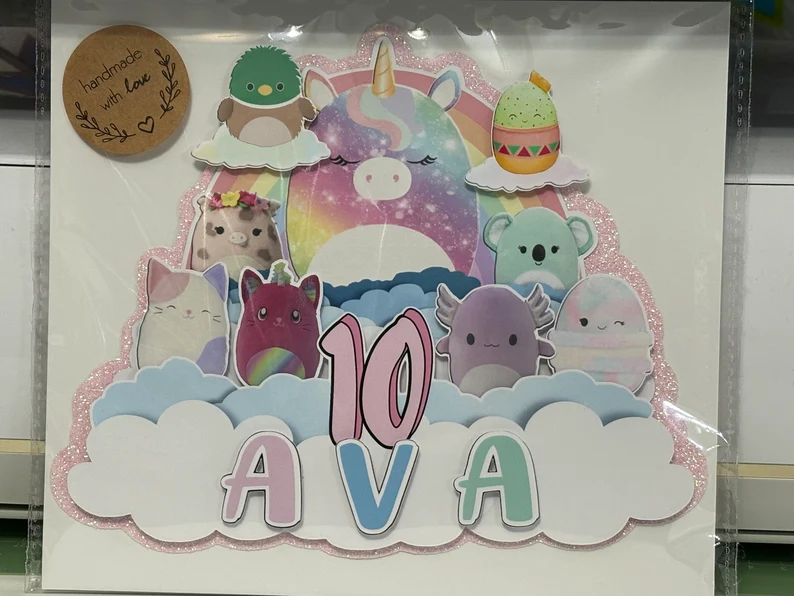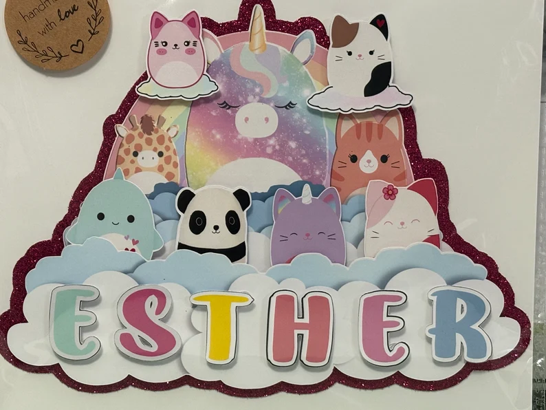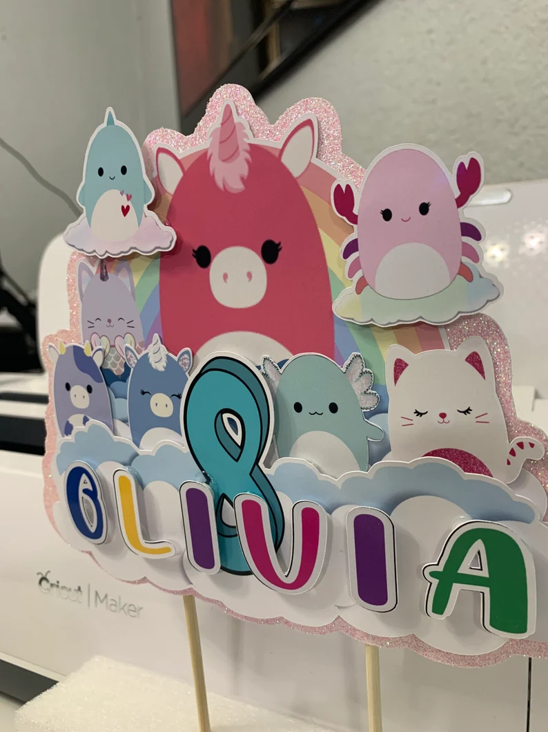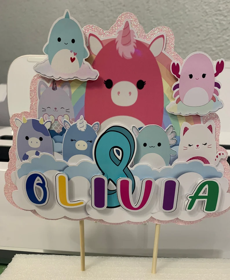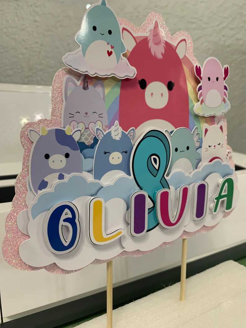 Personalized Squishmallow Glitter Cake Topper: Girls Birthday Party Decoration