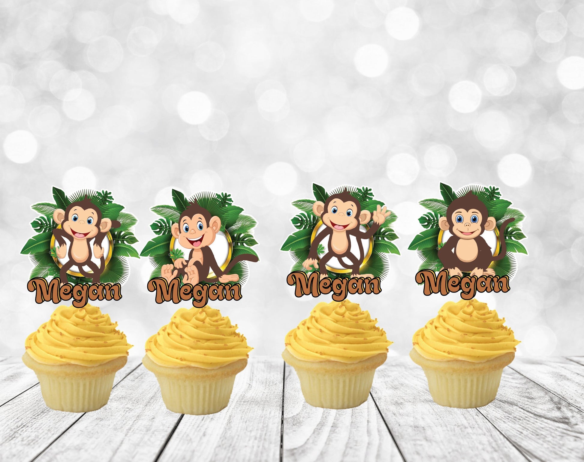 Cute Monkeys Cupcake Toppers, Monkeys Party Decoration, Little Monkeys Party (package of 12)