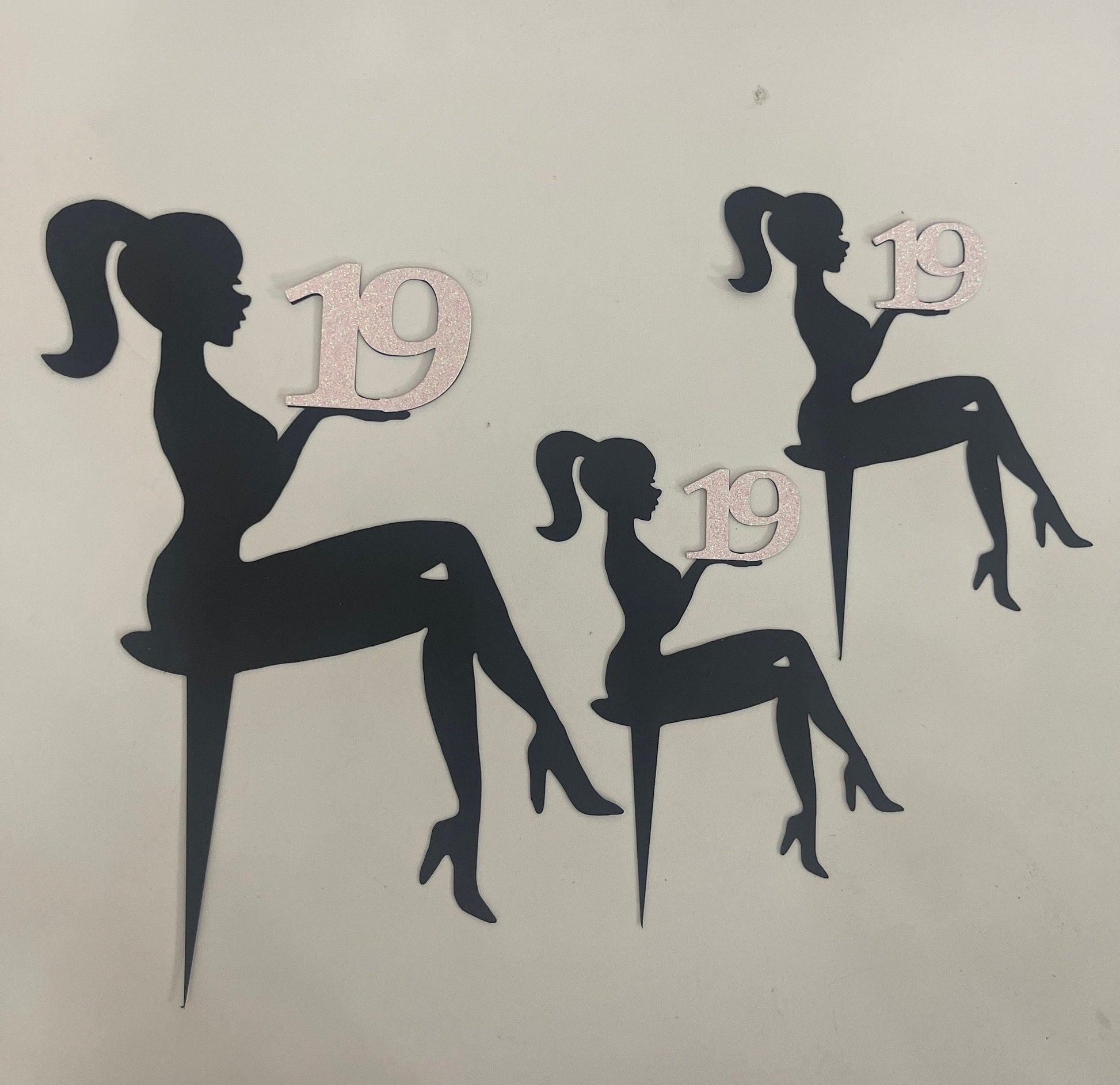 Sitting girl cake silhouette, girl silhouette, black cake topper, glamour girl, girl birthday decor, silhouette topper