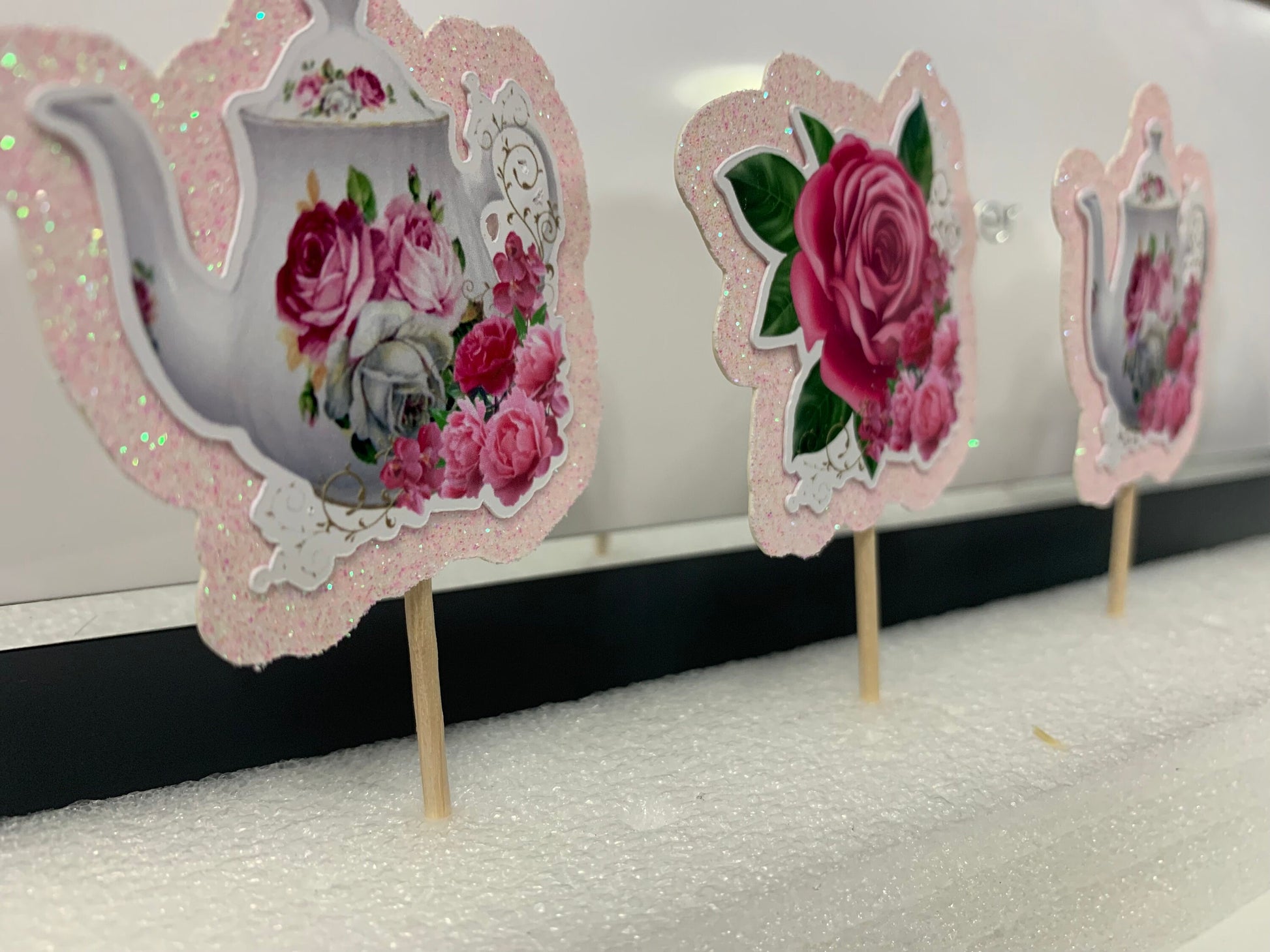 Tea Pot & Flowers Party Cupcake Toppers (Package of 12)